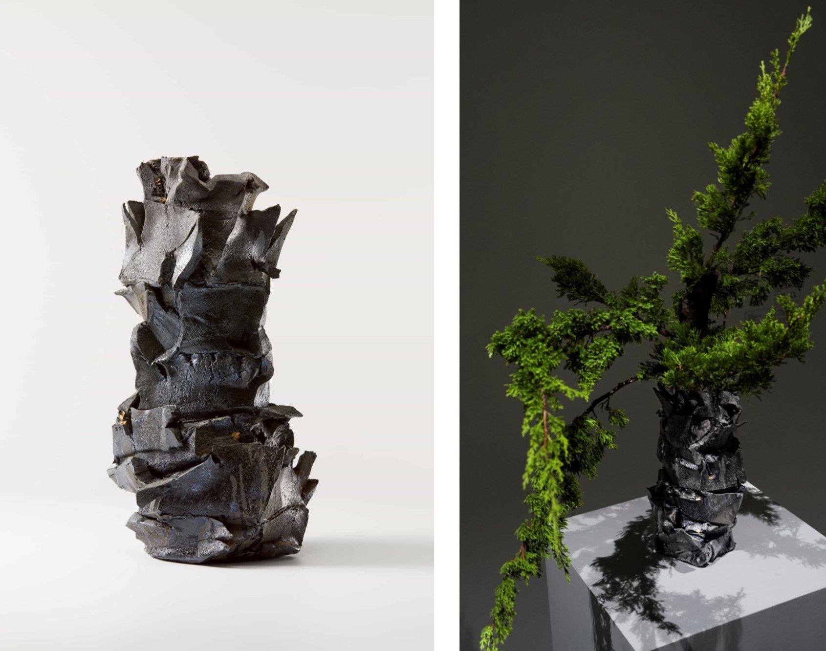 Michikawa’s ceramic sculptures embody twisting and spontaneous rupture, often wheel-thrown and then deconstructed, their surfaces marked by intense spirals, fractures, and sudden gestures — dynamic imprints of velocity and contingency.